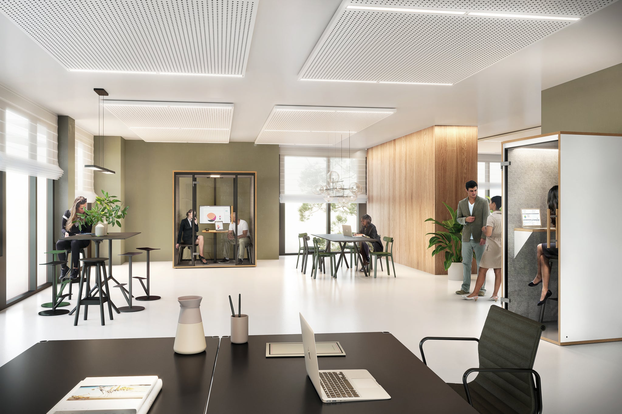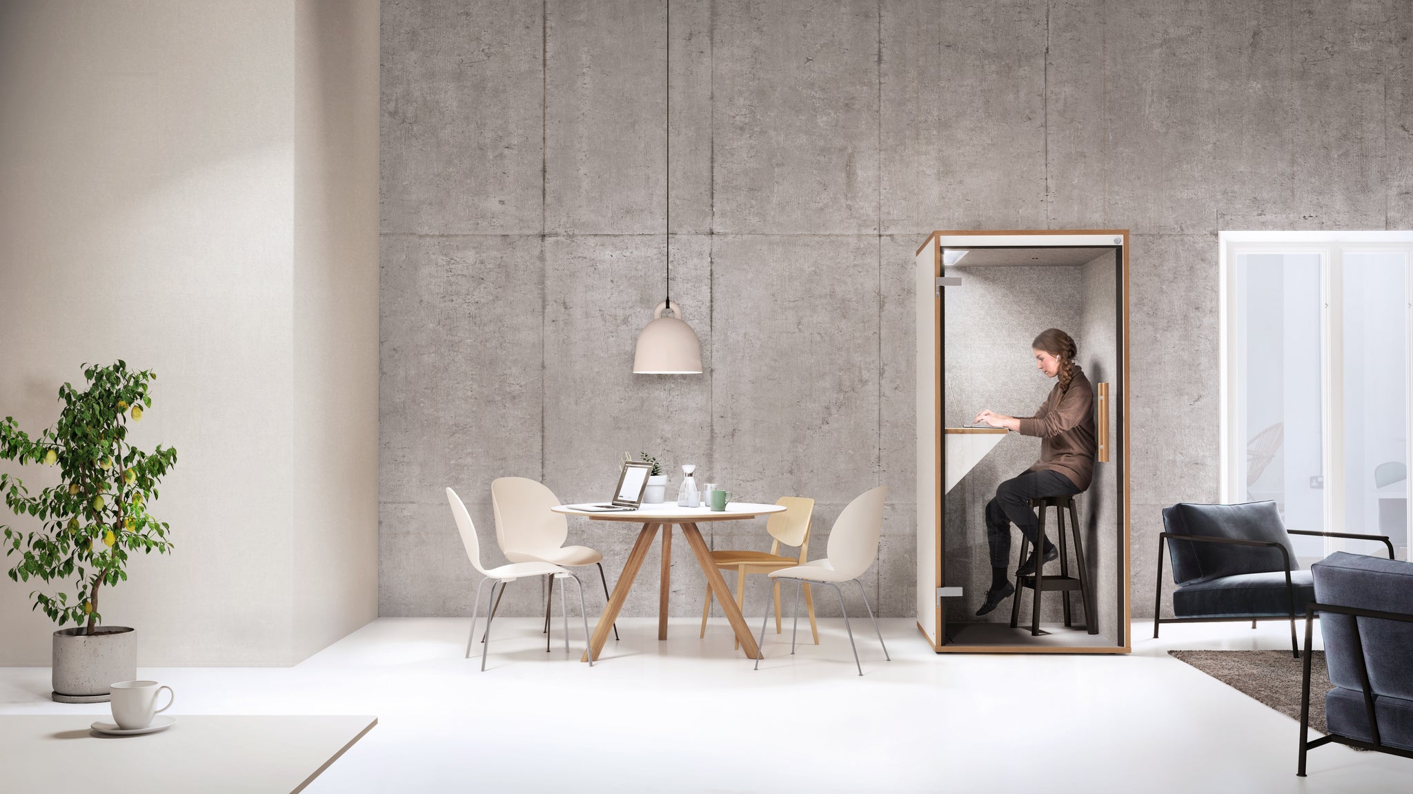 Die Telefonkabine Solo hat doppelte Wände und schallisolierende Materialien - damit Umgebungsgeräusche draußen und Deine Gespräche vertraulich bleiben.